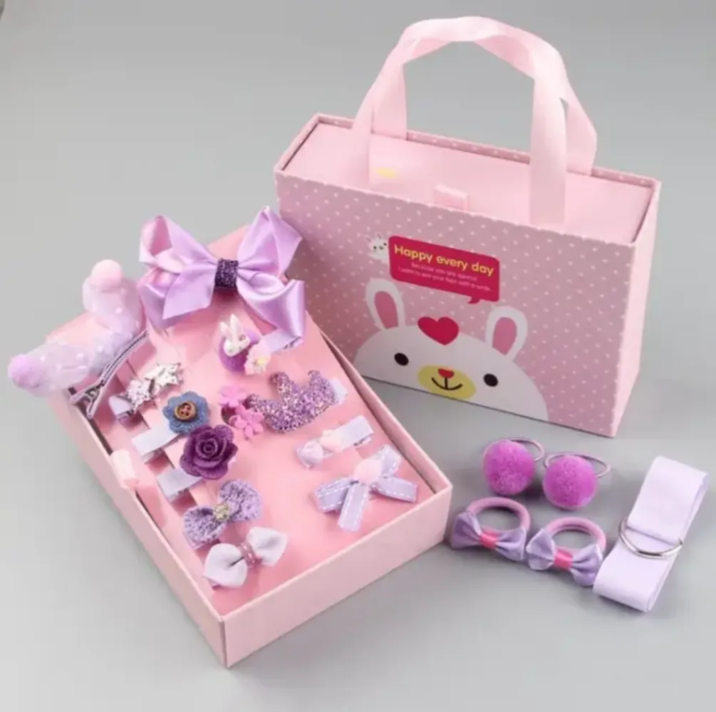 Coffret de 17 barrettes et chichis pour sublimer les coiffures de vos princesses. Il contient 11 barrettes, une ficelle, 4 chouchous et deux petits pinces à cheveux.